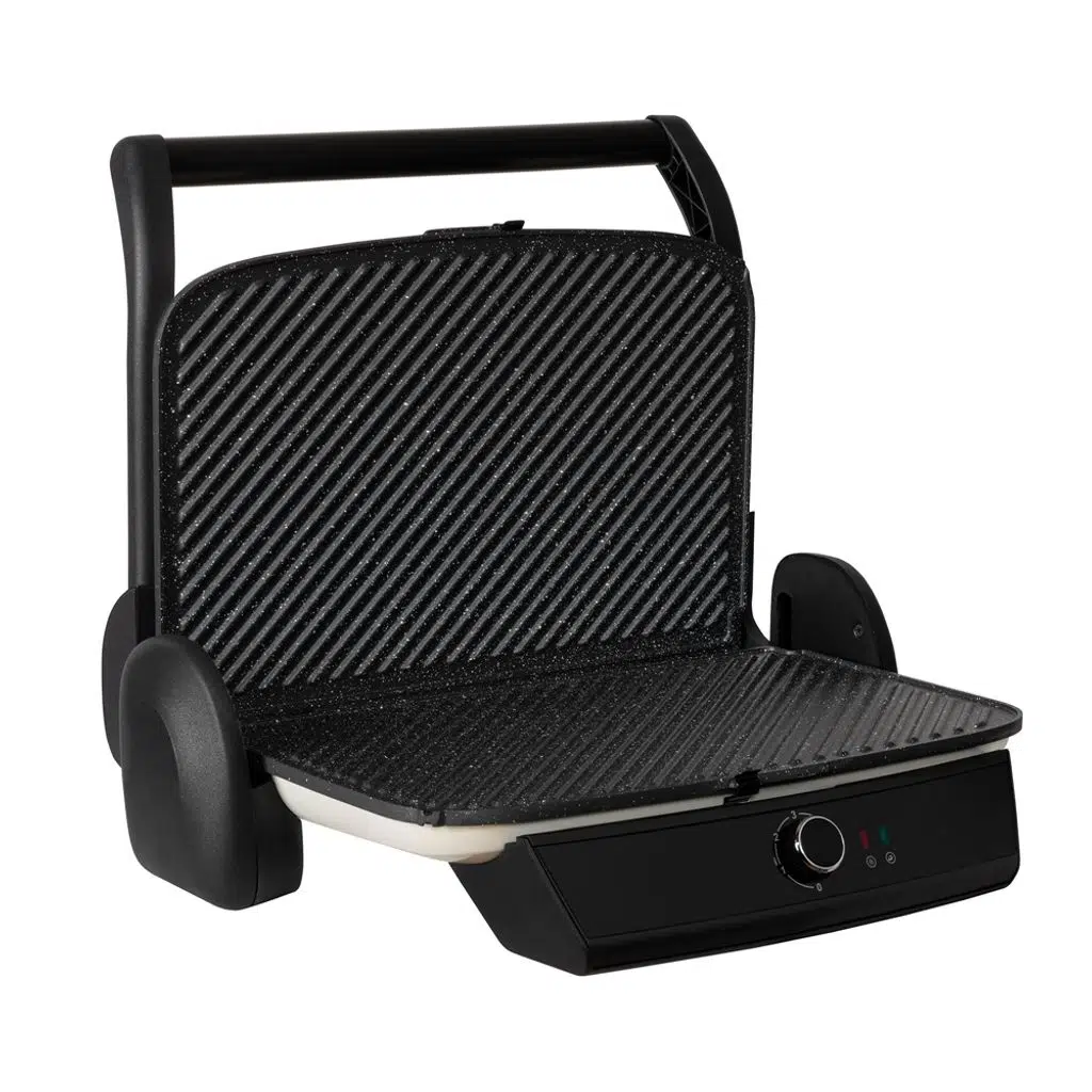 180 derece açılabilen ızgara fonksiyonu sayesinde tost makineniz sadece bir tost cihazı olmaktan çıkar, çift taraflı açık pişirme yüzeyiyle et, sebze ya da sandviç gibi birçok yiyeceği kolayca hazırlayabileceğiniz pratik bir yardımcıya dönüşür.